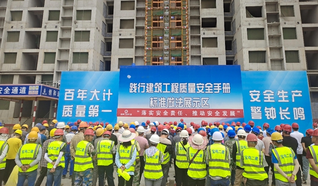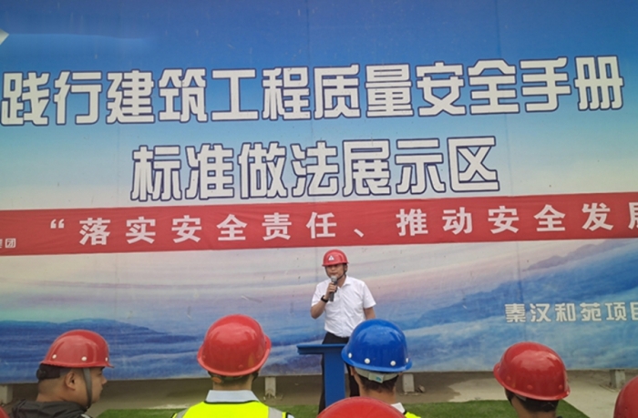 秦漢和苑項目經理申宏亮對項目安全管理作了經驗交流并對安全生產做出了鄭重承諾。他提到,現場安全生產不光要明確目標、突出重點,更要樹立大局意識,認清形勢、狠抓落實。只有把安全生產工作做細做好、落到實處,才能創造一個安全、有序、和諧的生產環境。