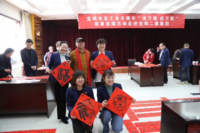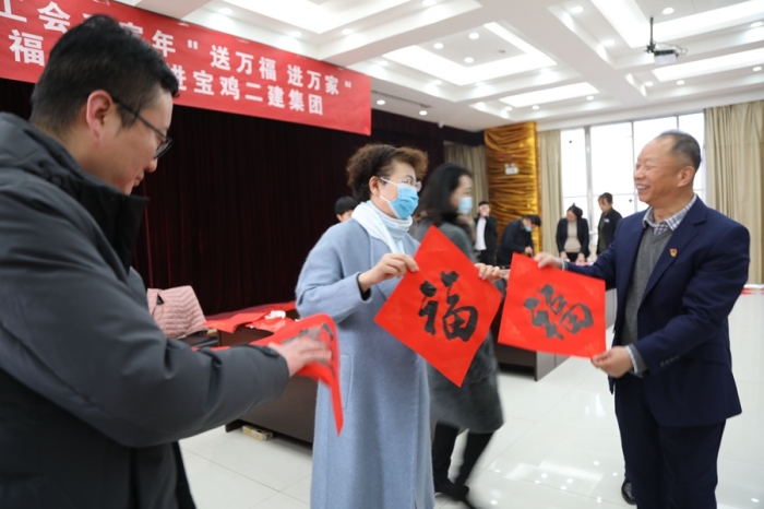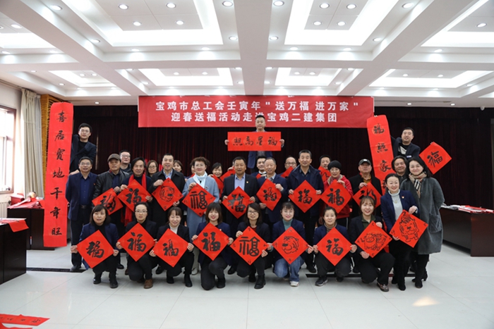 1月18日,寶雞市人大常委會副主任、總工會主席曹海芹,市職工文聯主席楊曉文、副主席郭旭及6名書法名家走進集團公司,開展“送萬福 進萬家”市總工會壬寅年迎春送福活動,為員工們送來了濃濃的關愛和新春的祝福。