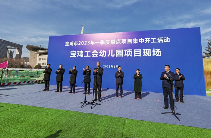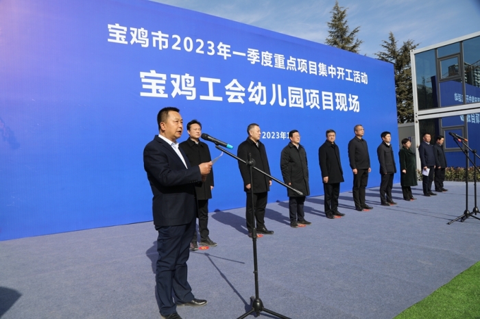 1月28日,寶雞市2023年一季度重點項目集中開工活動在集團公司承建的寶雞市總工會幼兒園項目現場舉行,市委書記楊廣亭下達開工令,市長王勇、市人大常委會主任景耀平、市政協主席劉榮賢、市委副書記段小龍參加活動。市委常委、常務副市長賈珉亮主持開工活動。市人大常委會副主任、市總工會主席陳小平介紹項目情況。